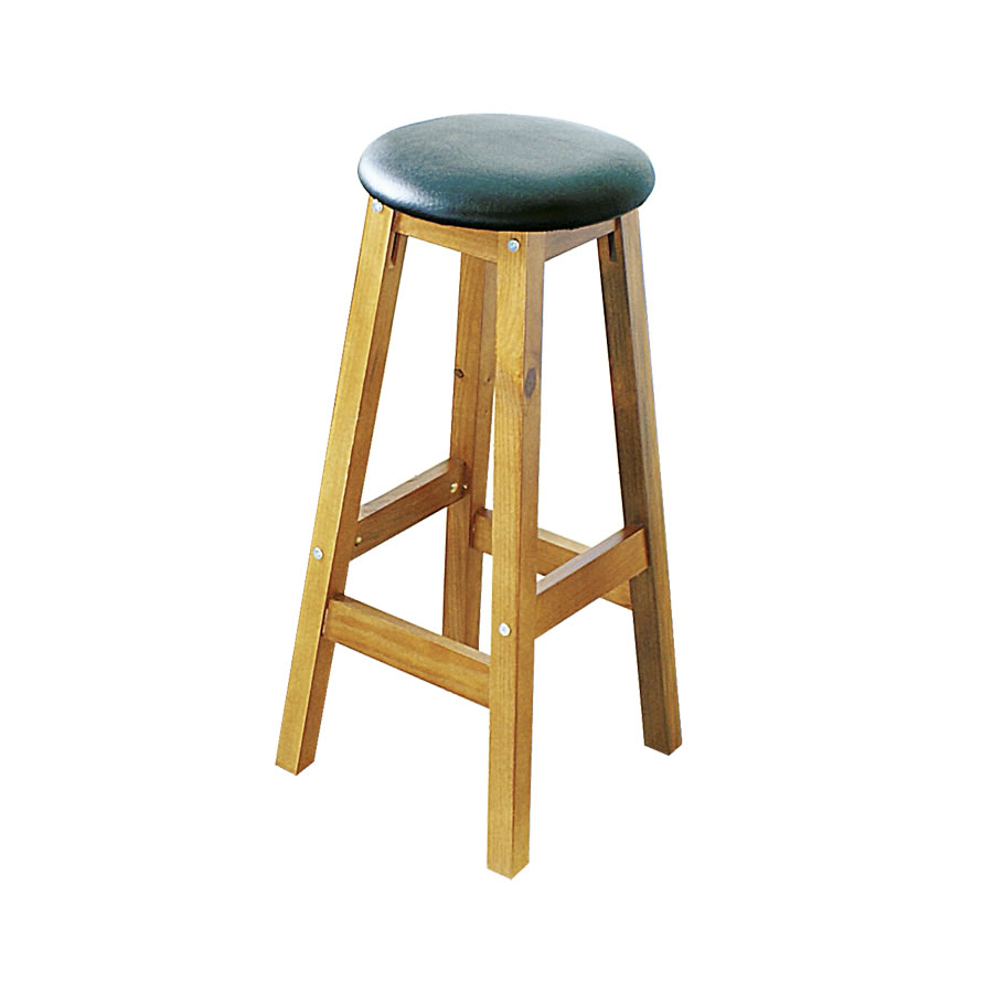 Fabricado em madeira renovável (pinus), com finíssimo acabamento padrão mogno, ferragens bricromatizadas, assento estofado na cor preta, possibilitando melhor conforto ao usuário.- Altura 75cm.